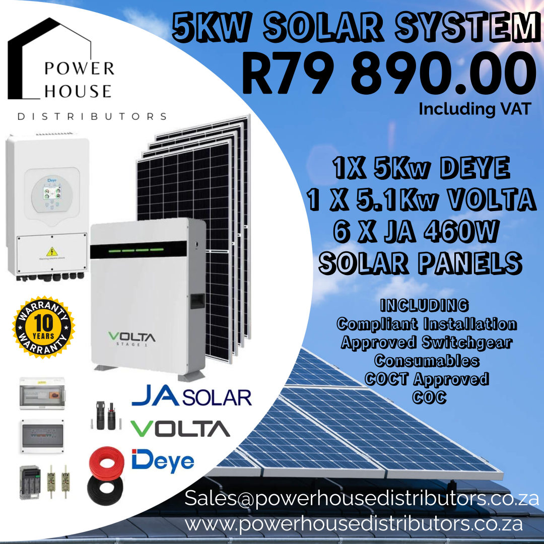 Installed: 5KW DEYE, VOLTA & JA Solar System & Back Up Power (Western Cape Only)