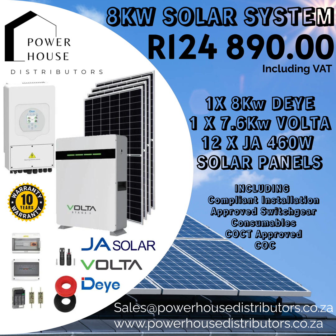 Installed: 8KW DEYE, VOLTA & JA Solar System & Back Up Power (Western Cape Only)